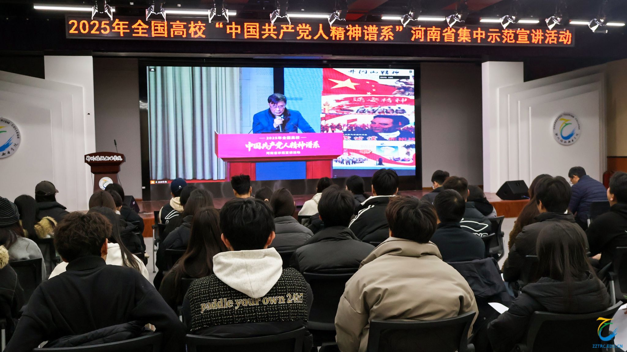 本次宣讲活动为我校师生呈现了一堂立意高远、内涵丰富的思政示范课。我校将以此次宣讲活动为重要契机、以精神学习为强劲动力,持续深化党的精神谱系内涵研习,立足河南红色资源禀赋,紧扣学校办学特色,推动红色精神有机融入思政课程与课程思政全过程,切实把精神力量转化为立德树人、干事创业的实际成效,为职业教育高质量发展与文旅融合赋能贡献更大力量。